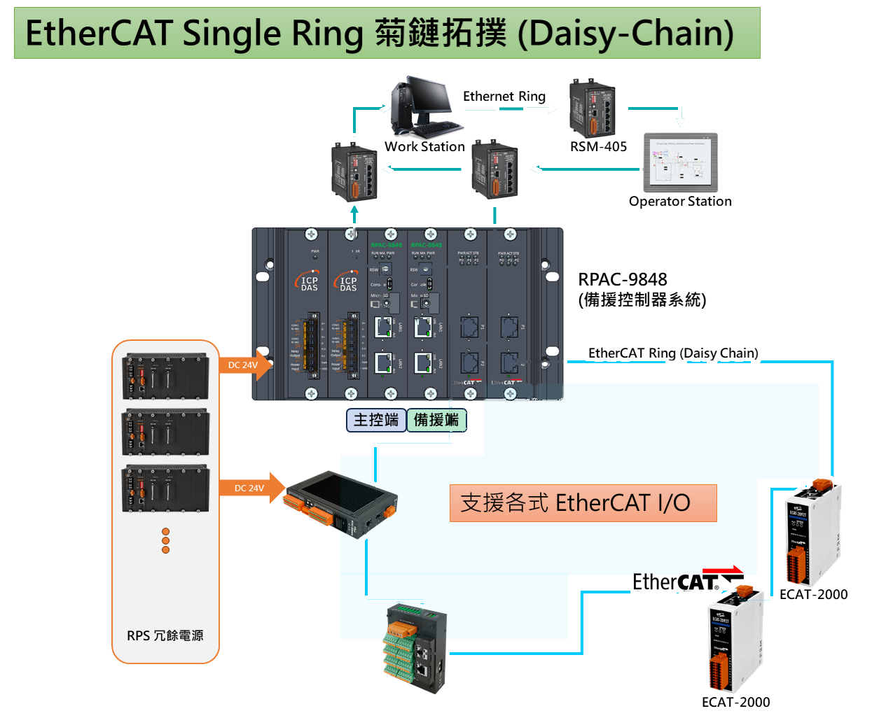 RPAC-9848 is ICP DAS’s next-generation Win-GRAF Programmable Automation Controller (PAC). It adopts a quad-core Cortex-A53 processor (1.6 GHz) running the Xenomai real-time kernel to deliver high performance and deterministic real-time task control. The controller integrates multiple industrial communication protocols, including EtherCAT, OPC UA, and Modbus TCP/RTU. RPAC-9848 features a dual-controller redundant architecture to enhance system safety and stability. It can be combined with ICP DAS redundant I/O and redundant power products to build a non-stop, high-availability system according to application requirements.