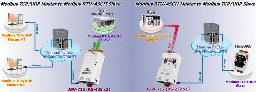 - Supports Modbus TCP/UDP master and slave